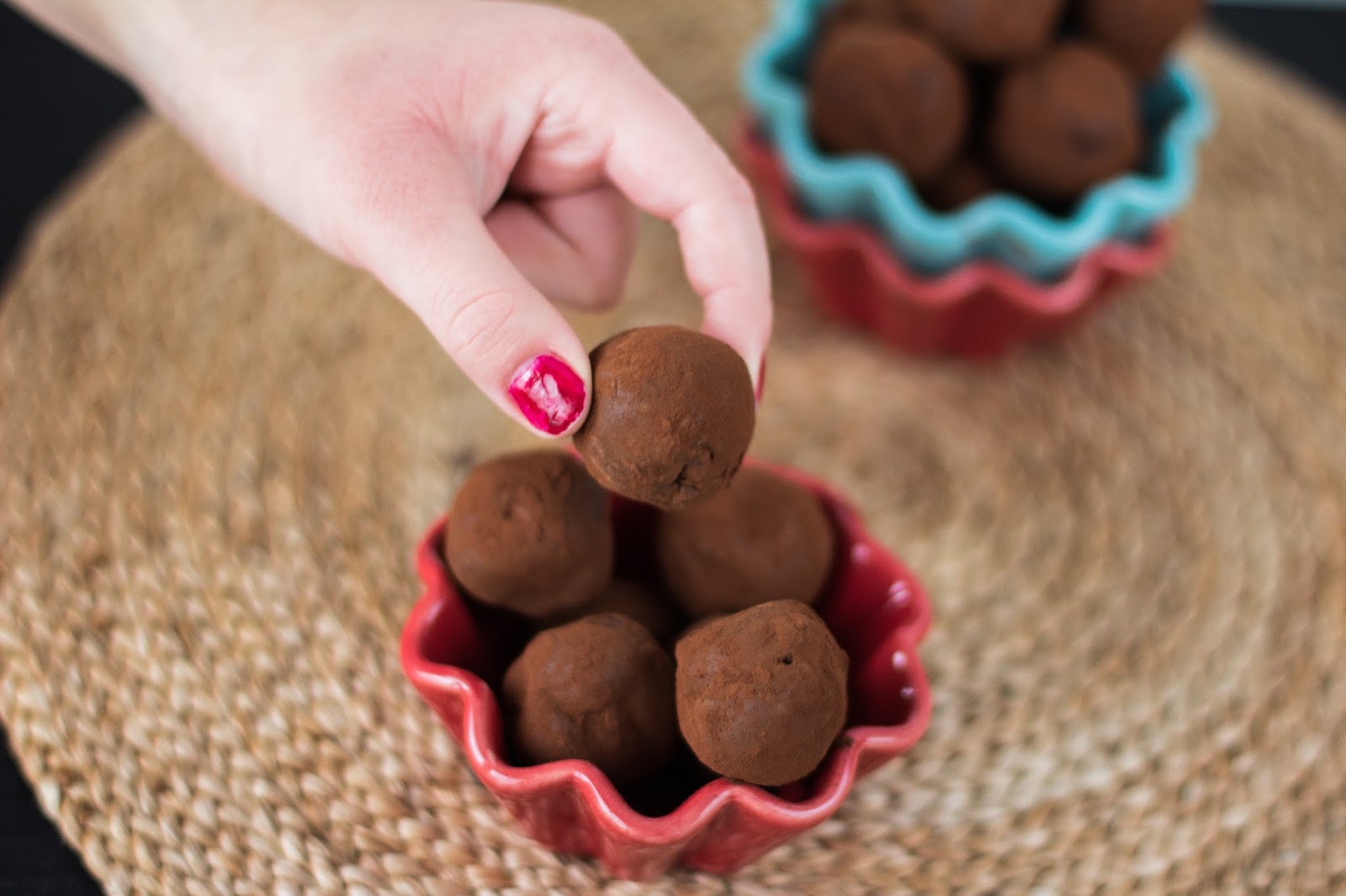 Pyörittele tryffelimassa palloiksi ja kierittele lopuksi kaakaojauheessa. Nyt tryffelit ovat valmiit pakattavaksi lahjapakkauksiin.