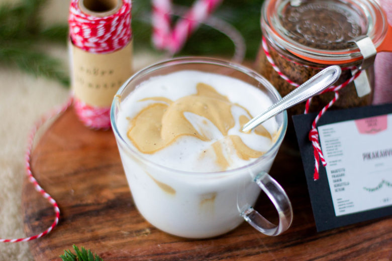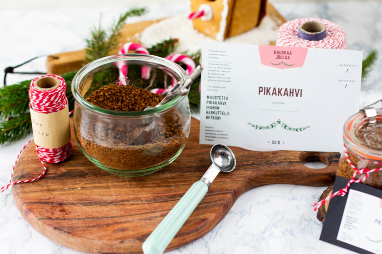 Maustettu pikakahvi on oiva joululahja kahvia rakastavalle läheiselle. Törmäsin kaupassa valmiiksi maustettuihin pikakahveihin ja siitä se ajatus sitten lähti. Miksi en itse maustaisi pikakahvia jouluisilla …